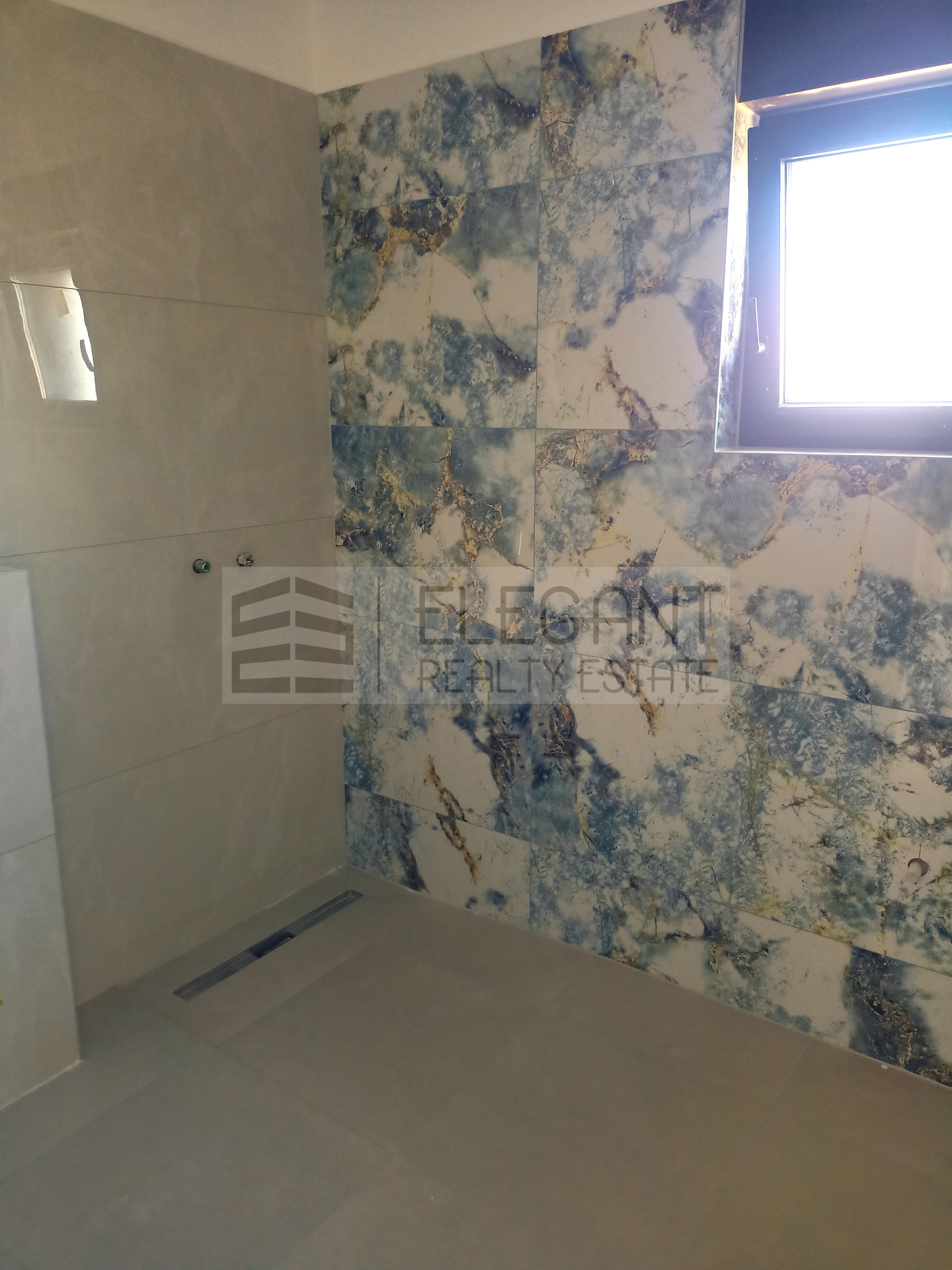 Ovaj stan izgrađen je 2025. godine, a odlikuje ga izuzetna sunčanost te savršena pozicija neposredno uz more. Smješten na jugozapadnoj strani, pruža obilje prirodne svjetlosti tijekom cijelog dana, što dodatno doprinosi ugodnom boravku. Stan raspolaže s dvije spavaće sobe, a njegova orijentacija prema jugu, zapadu i jugozapadu omogućuje uživanje u toplim i svijetlim prostorima.