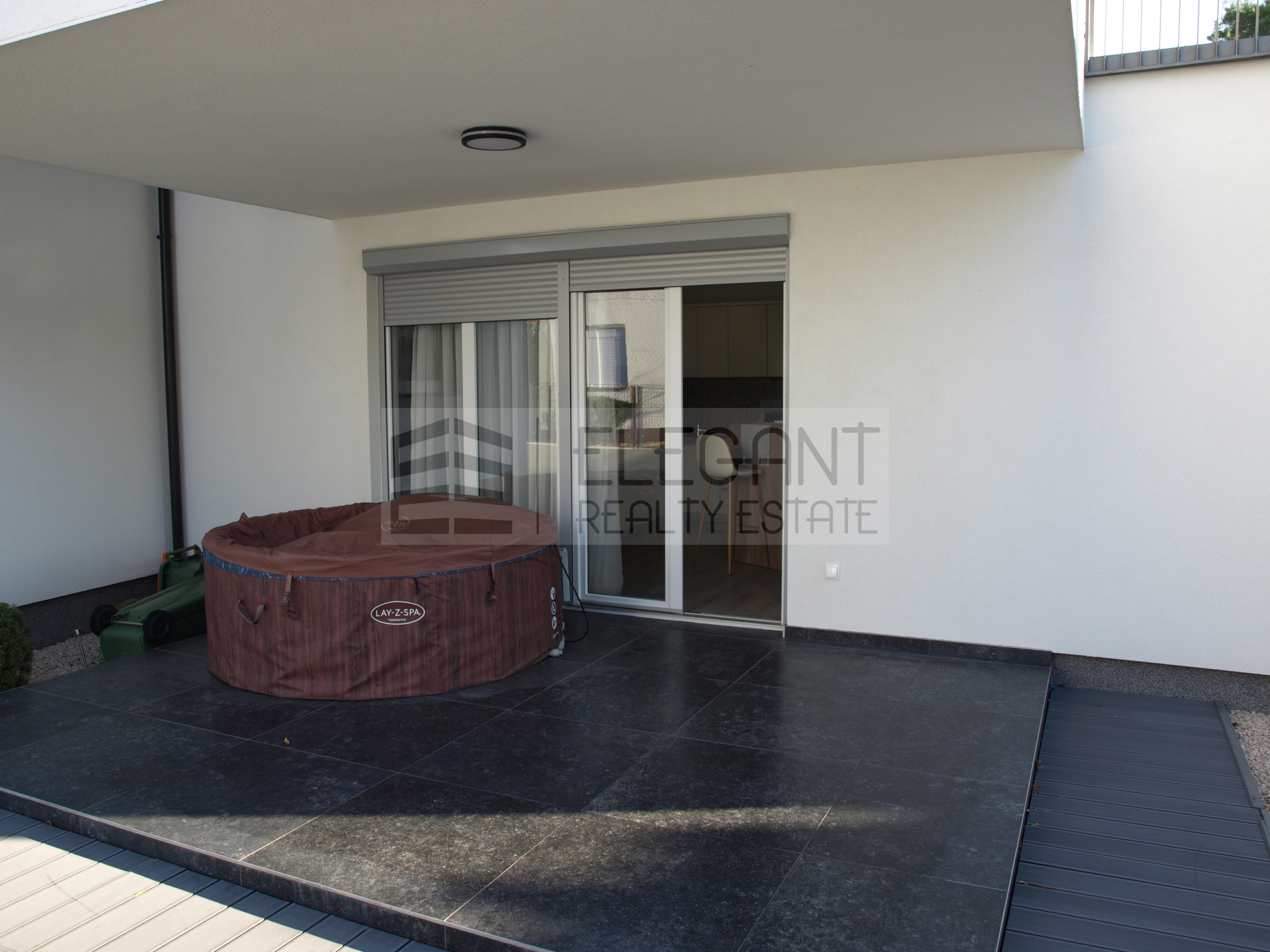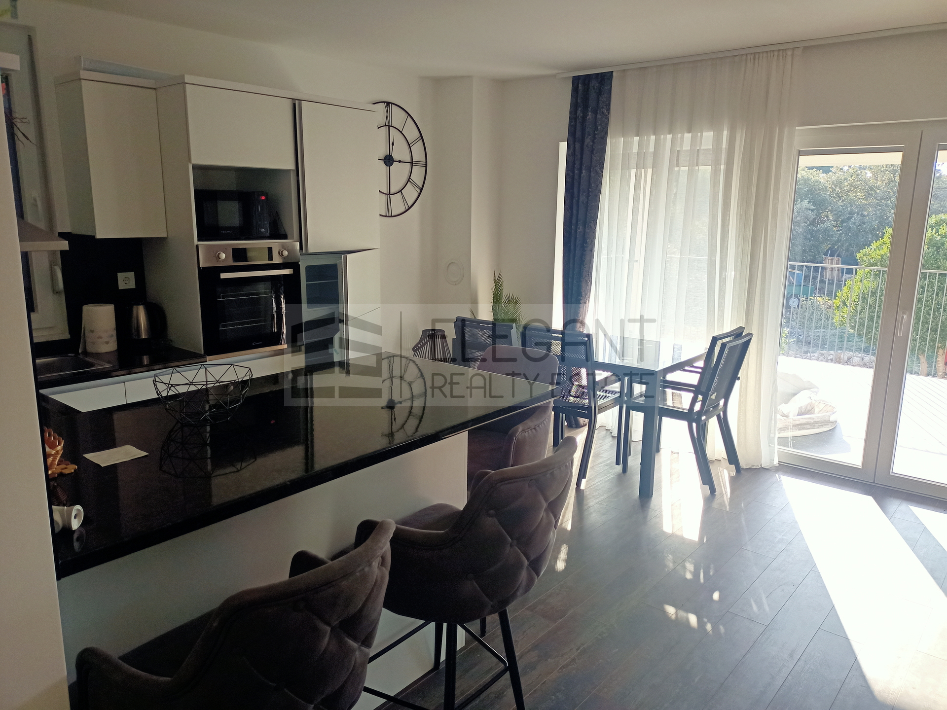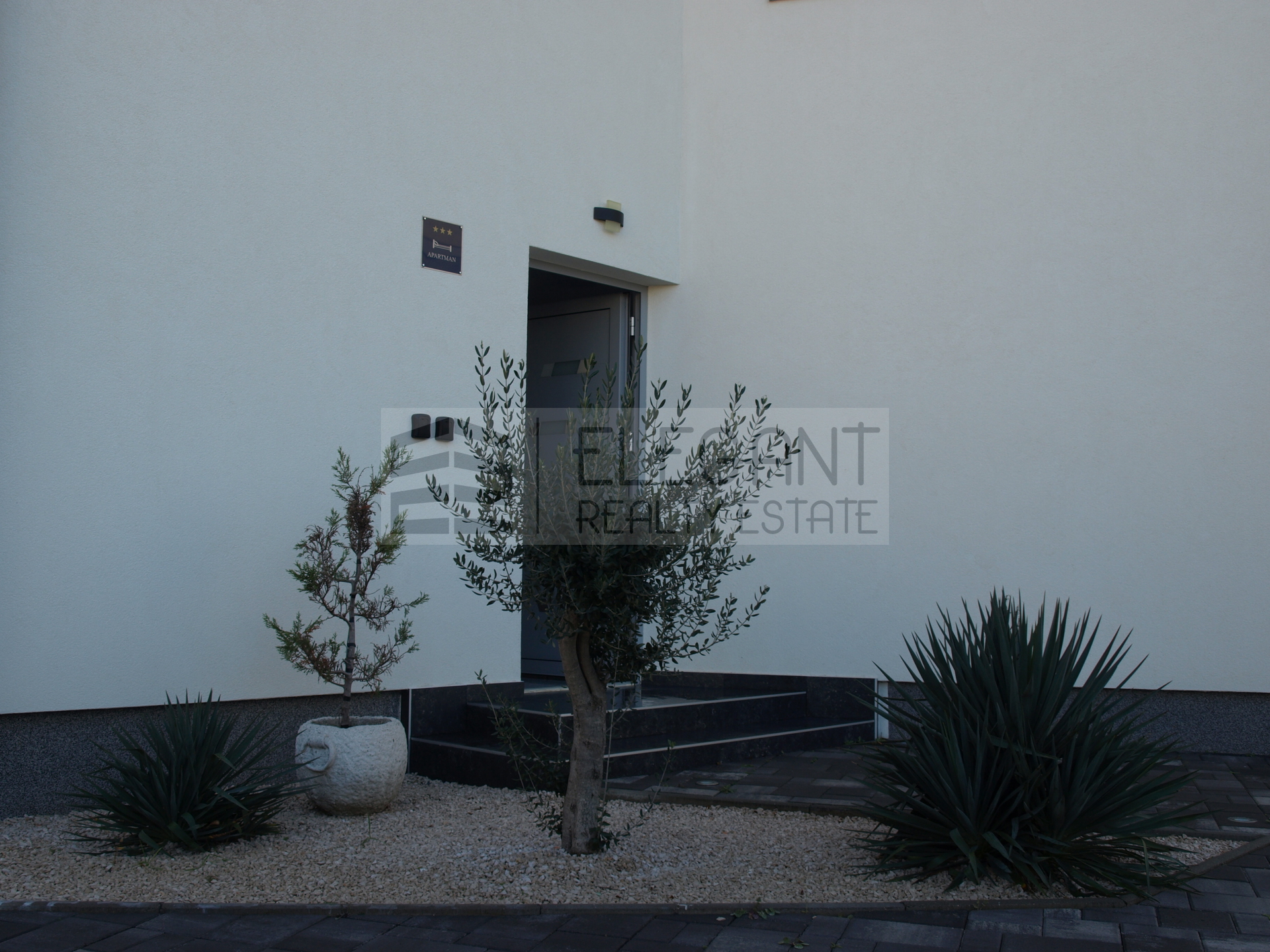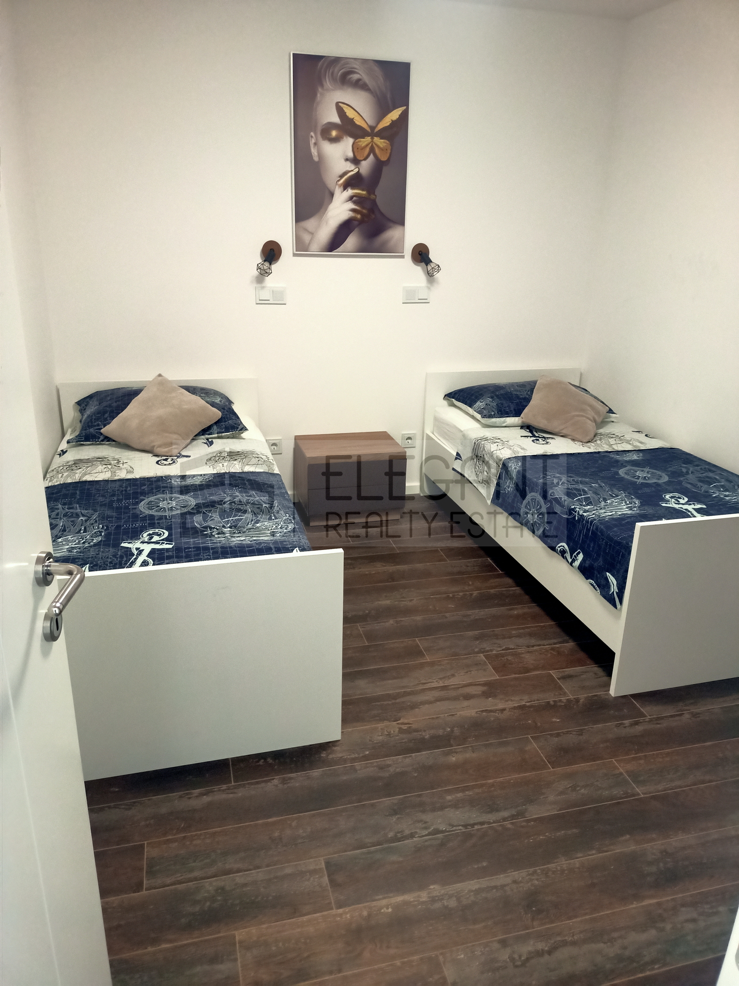 Prostrano dvorište površine 257 m2 pruža mogućnosti za opuštanje na otvorenom, dok balkon dodatno upotpunjuje vanjski prostor. Unutrašnjost je opremljena funkcionalnom kuhinjom s aparatima, perilicom posuđa, perilicom rublja, televizorom i krevetima, što doprinosi udobnosti svakodnevnog života.